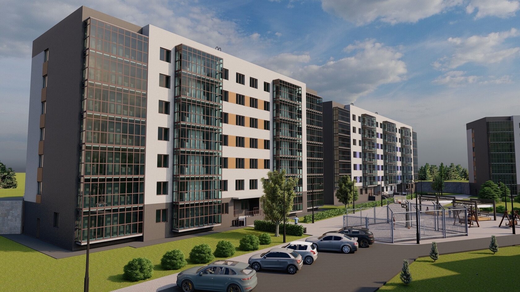 - Просторные зелёные зоны и благоустроенные дворы